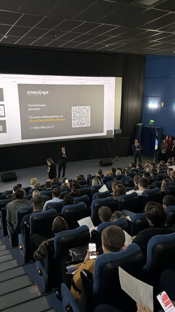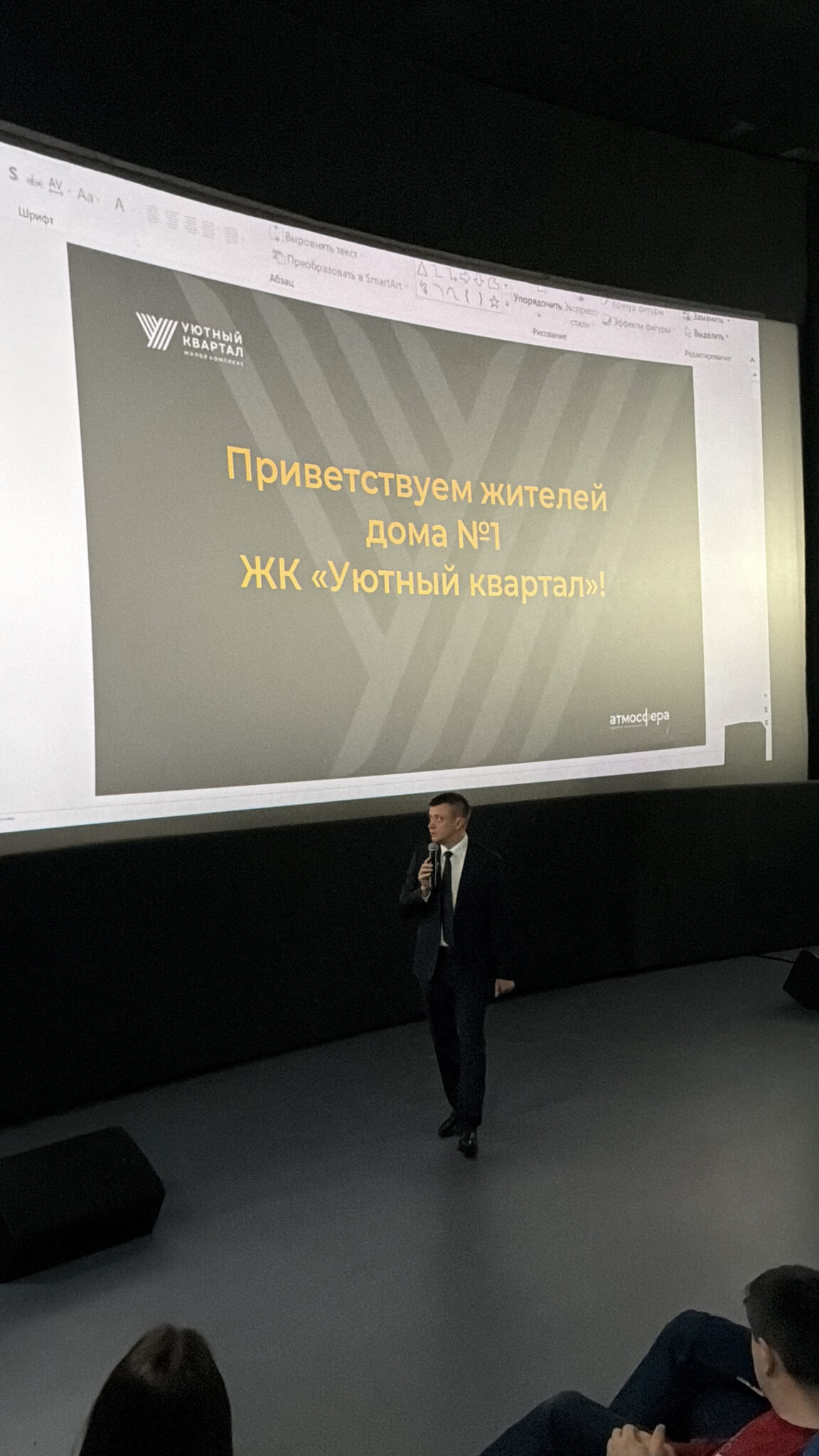 Группа компаний «Атмосфера» провела информационную встречу в киноцентре «Гринвич». На ней можно было из первых уст получить всю актуальную информацию. На вопросы собственников отвечал гендиректор Сергей Клепиков. Ему помогали руководитель по добрососедству сервисной компании «Атмосфера Уюта» Елена Березина, директор сервисной компании Антон Тырышкин, руководитель отдела продаж застройщика Алексей Сыров, основатель студии дизайна и отделки SDO Джамиля Яшморзова.