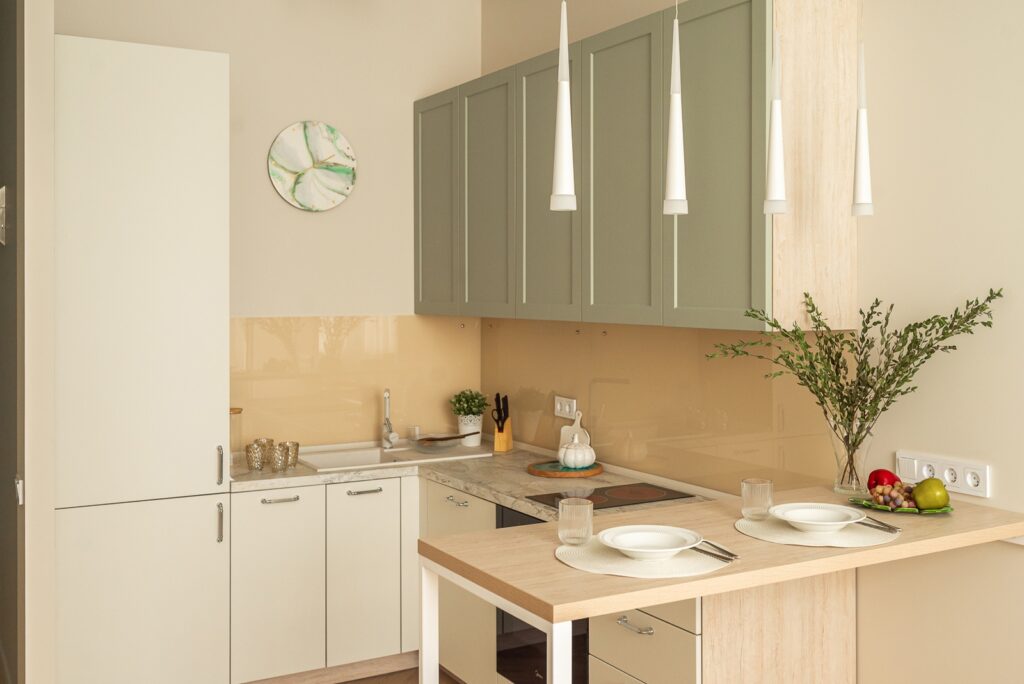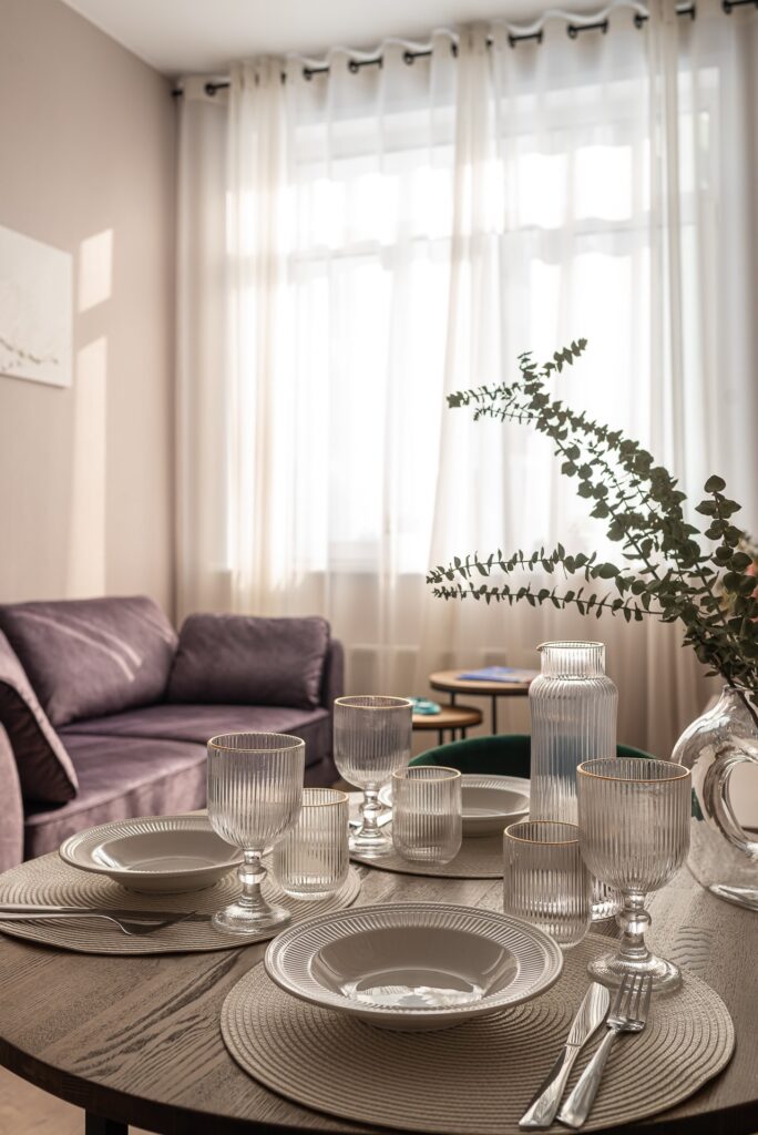 Стены: обои, выделение зон, пол: ламинат, потолок натяжной (сатин, глянец матовый), двери, ванная комната: плитка, сантехника: унитаз, ванная акриловая, умывальник с тумбой, смесители, электрика, светильники, клининг - Согласование актов на скрытые работы с застройщиком (электрика, сантехника, звукоизоляция, гидроизоляция, кондиционирование — при необходимости)
