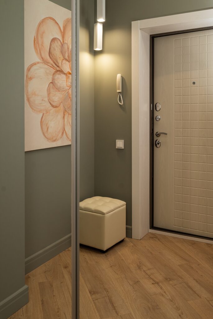 - Выполнение следующих работ: Стены окрашивание, пол: выравнивание, влагостойкий ламинат, плинтус, потолок: натяжной, багет EuroKraab, двери, ванная комната: широкоформатная плита, сантехника, электрика, розетки и выключатели, светильники, клининг.