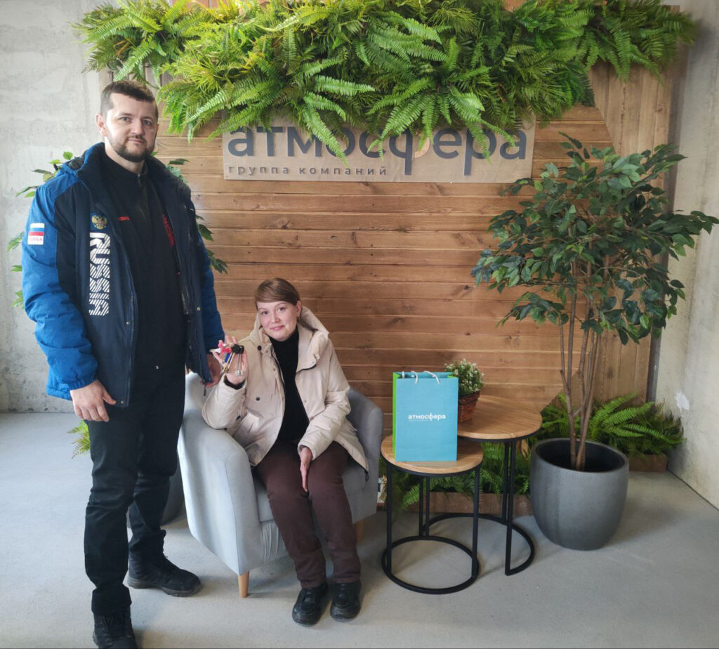 Массовая передача квартир успешно завершена, ключи уже получены новосёлами. Благоустройство территории находится на завершающей стадии. В парке высажены деревья совместно с жителями, участниками СВО и сотрудниками компании «Атмосфера».