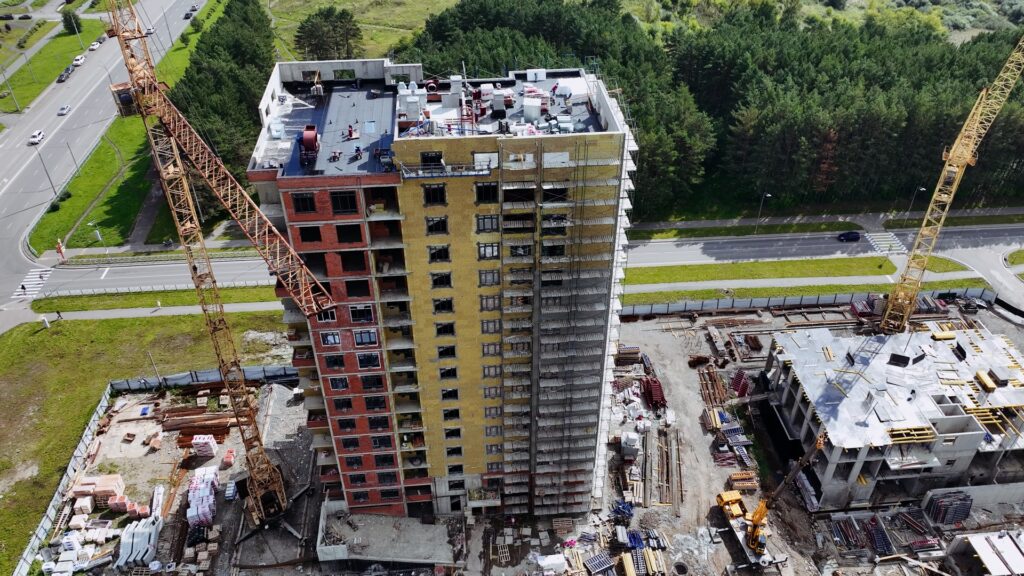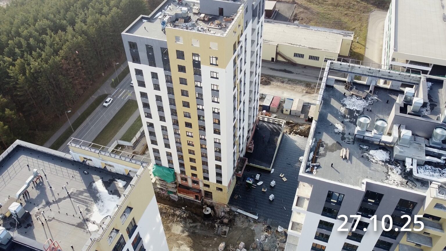 - Ведутся кладочные работы 14-15 этажей и парапетов б/с1 и б/с2