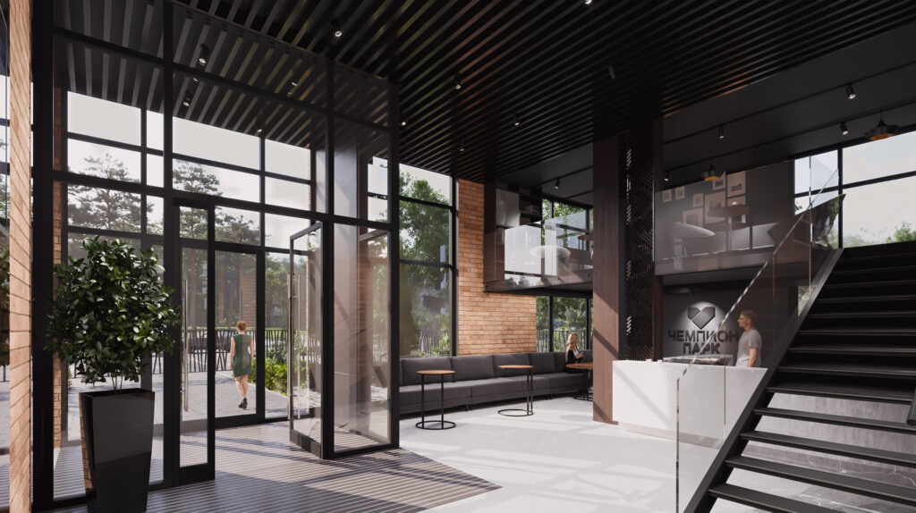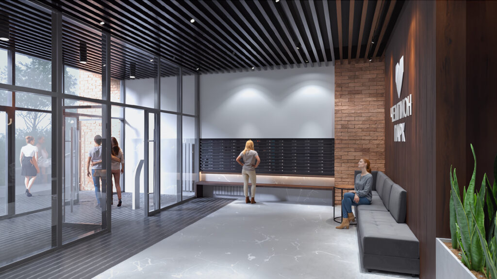 Жителей ЖК «Чемпион парк» встретят современная система доступа, входные группы без ступеней с панорамным остеклением, дизайнерская отделка качественными материалами, красивая подсветка и удобная навигация.