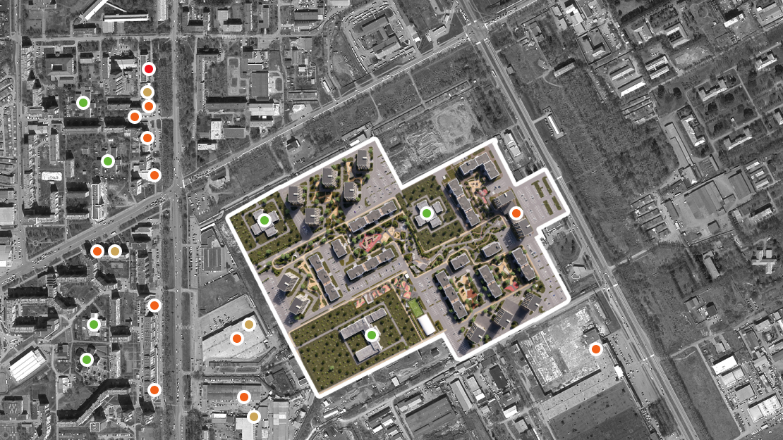 Сибирский квартал искусств, расположенный недалеко от комплекса, станет новой точкой развития района. Комплекс выходит на улицу Терешковой – одну из самых протяженных в городе, соединяющую лево- и правобережную части Кемерова. Вы сможете добраться до любой точки города за 10-15 минут.