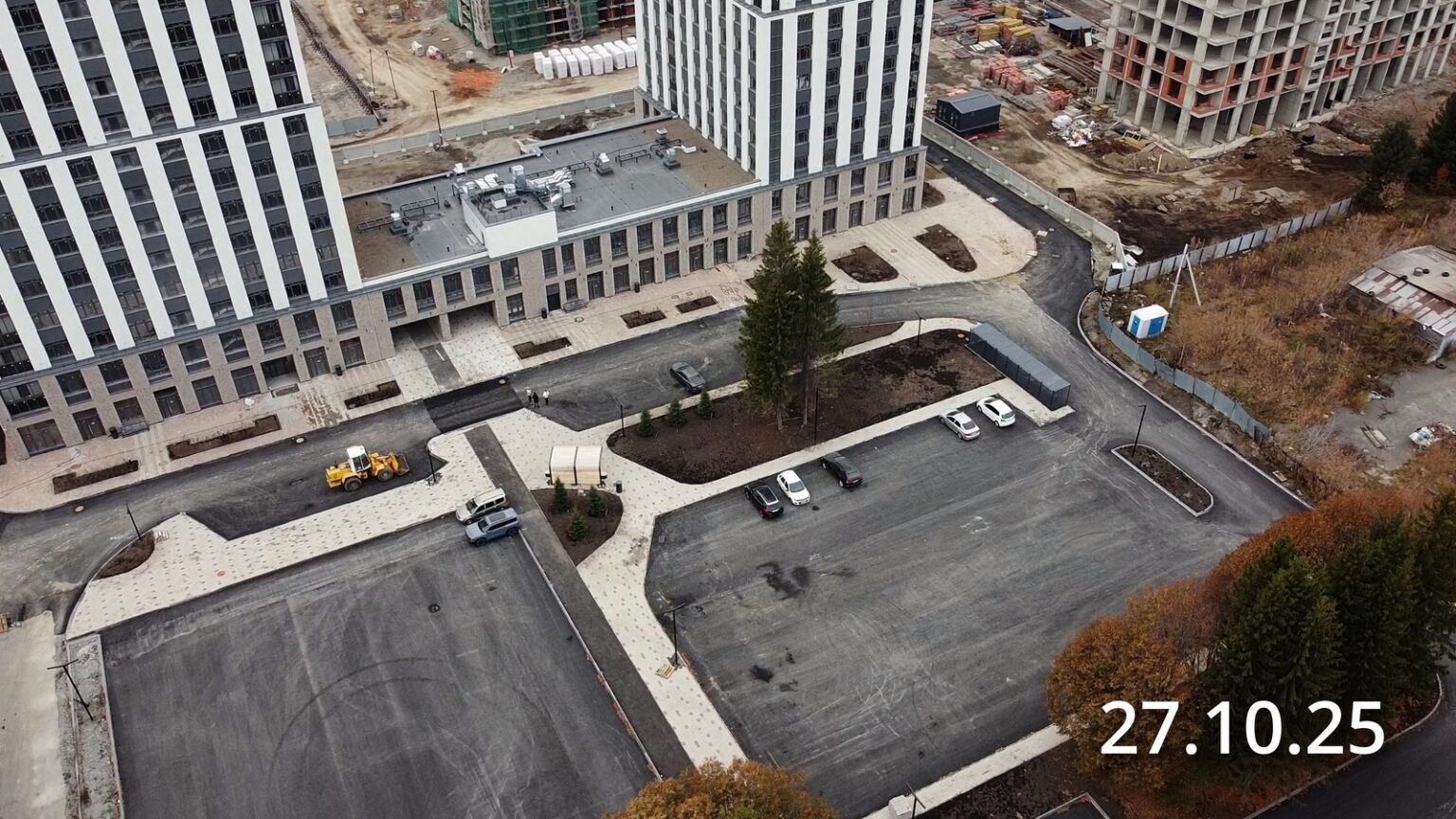 - Устройство основания парковки из щебня с уплотнением